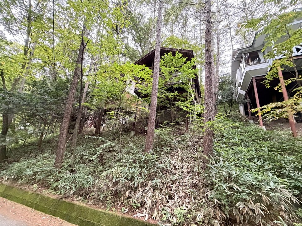 温泉や売店のあるフロント棟まで、約300mの便利な立地。 敷地は西側が一部平坦、東側は東急傾斜の開放感のある土地です。自然を感じられる森の中で…