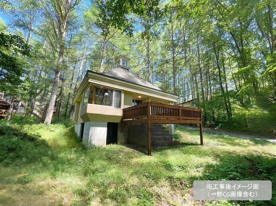 【価格を変更しました!】AMBIENT八ヶ岳のフロント棟を北へ登った坂の上に建つ建物。テラスからの景色はとても開放的で気持ちが良く、標高は11…